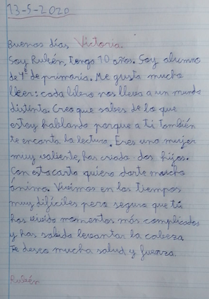 Ha sido una satisfacción leer el correo de Montserrat la responsable de la Residencia agradeciéndonos todo el material elaborado que ha hecho llegar a los ancianos de la Residencia y que nos cuenta que le encantaría que alumnado y ancianos se puedan conocer pronto y que las cartas y dibujos han sido un motivo de gran emoción para ellos.