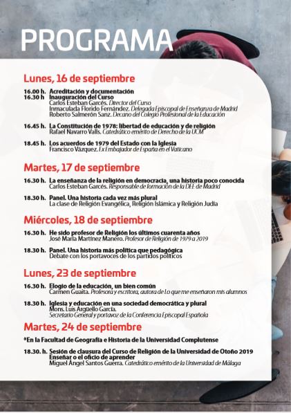 16, 17, 18, 23 y 24 de septiembre de 2019, de 16.00 – 20.30 h