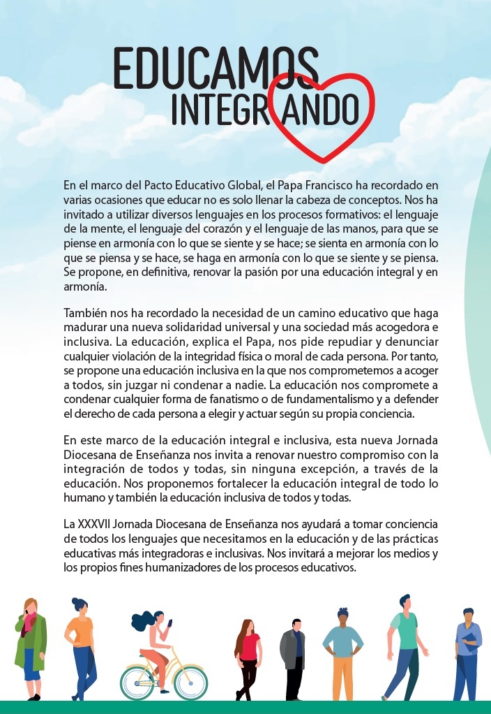 La XXXVII Jornada Diocesana de Enseñanza se celebra el 26 de marzo de 2022, en el Seminario Conciliar de Madrid (C/ San Buenaventura 9), invitando a renovar la pasión por una educación integral y el compromiso con la integración de todas y todos.