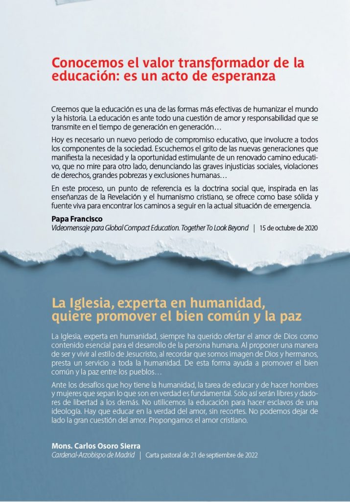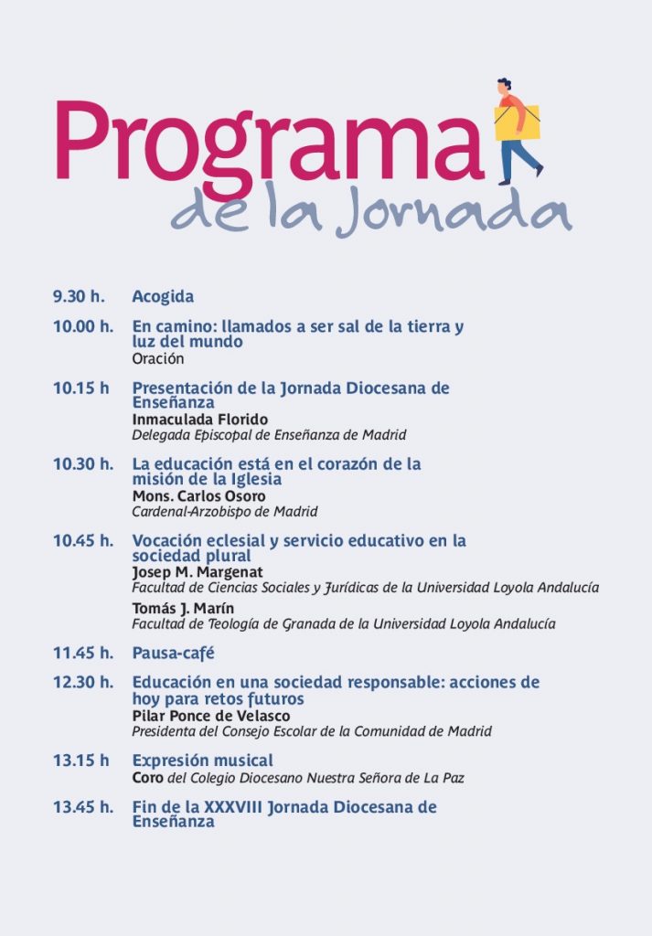 La XXXVIII Jornada Diocesana de Enseñanza se celebra el 11 de marzo de 2023, en el Seminario Conciliar de Madrid (C/ San Buenaventura 9), bajo el lema La Iglesia en la educación, una vocación de servicio al bien común.