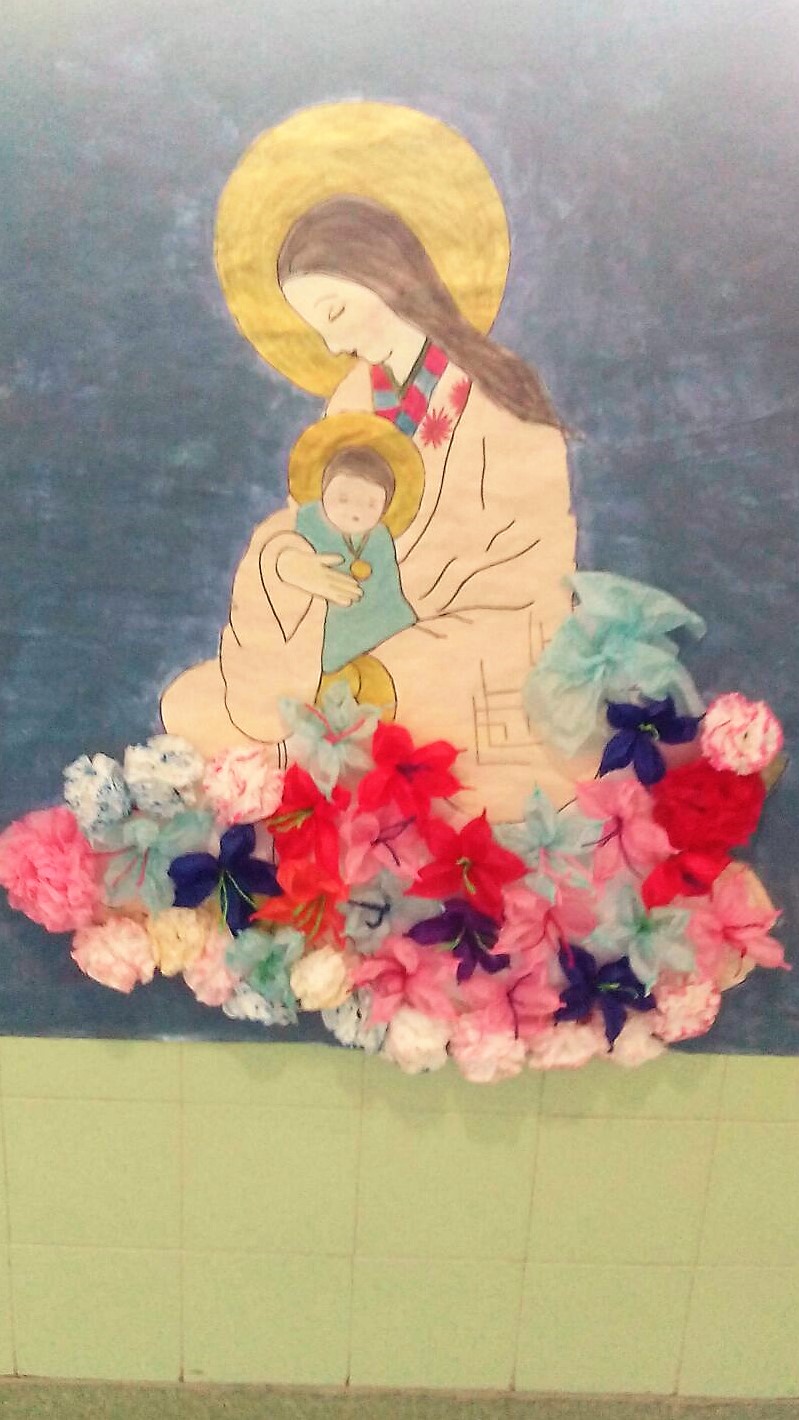 En mayo, muchos centros han realizado actividades con motivo del mes de María. Desde el Colegio Padre Coloma nos envían una trabajo realizado por los alumnos, de matera colaborativa y con motivos alusivos a otras tierras, lejanas, de donde son originarios muchos de ellos.
