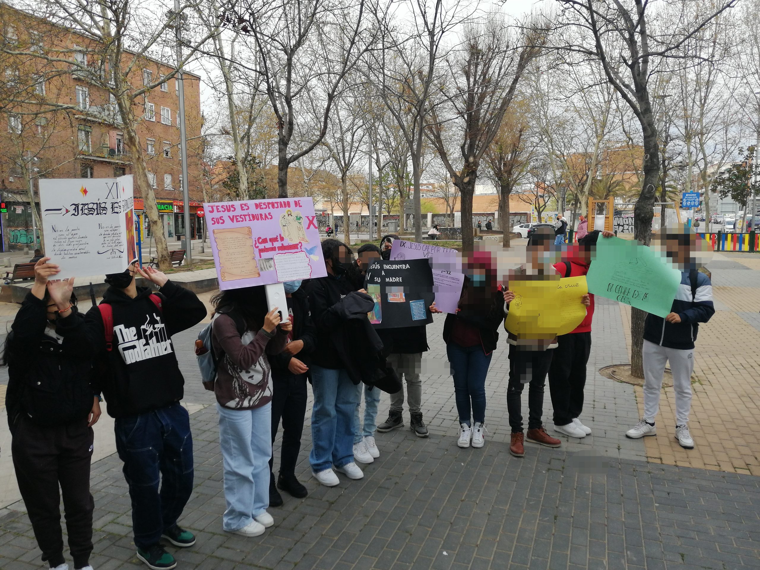Los alumnos del IES Emilio Castelar han estado haciendo en el aula un ejercicio de empatía parándose en los sentimientos de Jesús en su camino al Calvario; intentado entender y actualizar cómo las acciones e injusticias hechas a Jesús se siguen repitiendo en nuestro día a día, cómo el dolor de Jesús en su “Vía Crucis” sigue presente en las condenas y etiquetas que ponemos a los demás, en nuestras constantes caídas, en las madres que pierden a sus hijos, en los que se ven obligados a dejarlo todo, en los sinsentidos, en aquellas personas que se acercan hasta nosotros para enjugarnos el rostro e incluso en las veces que, incluso sin darnos cuenta, ayudamos a otra persona a llevar su propia cruz. Todo esto lo han hecho público saliendo al parque de su barrio, pancarta en mano, leyendo en voz alta y clara cada estación acompañada de un silencio, reflexión o dinámica.